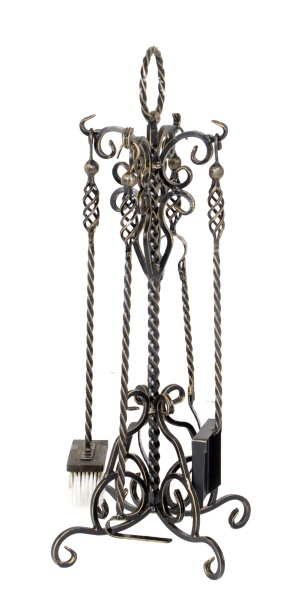 Комплект Основание, Совок, Метелка, Кочерга, Каминные щипцы