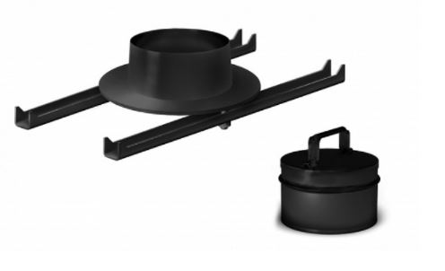 Адаптер предназначен для вертикального выходадымохода, расположенного на месте чугунной крышки ималенького кружка у печей «Статика»: Тетра, Квинта и Секста