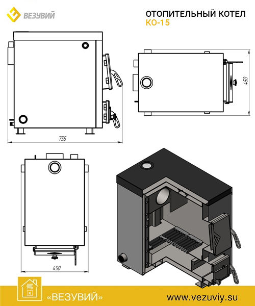 Котел отопительный КО - 15 ВЕЗУВИЙ