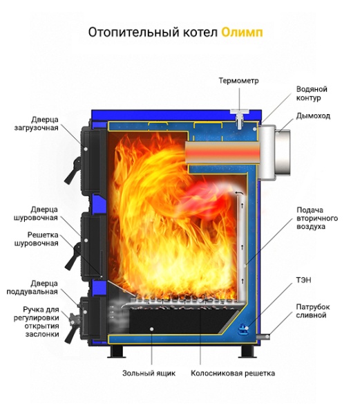 Отопительный водогрейный котёл «Олимп» предназначен для теплоснабжения индивидуальных жилых домов и зданий коммунально-бытового назначения, оборудованных системами водяного отопления с естественной или принудительной циркуляцией, в открытых и закрытых системах отопления.