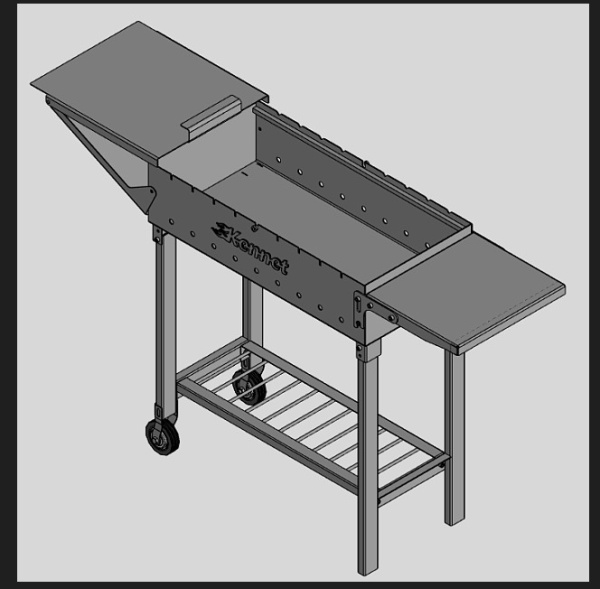 Мангал снабжен съемным столиком, который можно развернуть внутрб мангала и использовать в качестве решетки для приготовления пищи. Также мангал укомплектован крышкой-столиком. В разложенном виде можно использовать в качестве столика для удобства приготовления пищи, в сложенном виде служит крышкой мангала для защиты от погодных условий
