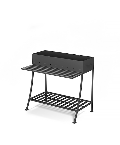 В основании мангала предусмотрена решетка, на которой можно хранить дрова или мешок углей.