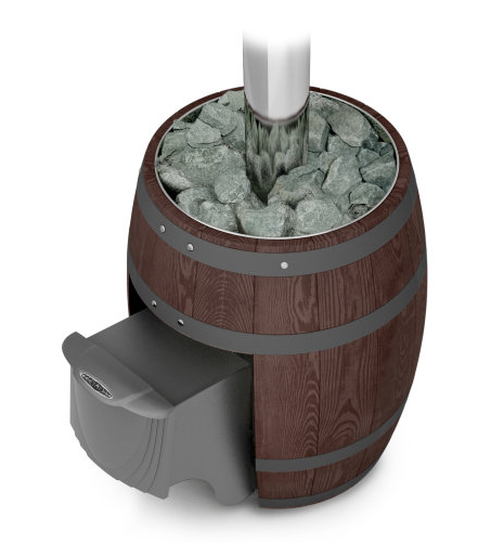 Потому что в эту бездонную бочку, у которой нет ни дна, ни покрышки, можно заложить столько камней, сколько вам вздумается. Делайте из нее хоть конвекционную печь для суховоздушной сауны, хоть бесконвекционную теплоаккумулирующую печь для русской паровой бани. Бочка – это высший пилотаж. В стилизации банных печей.