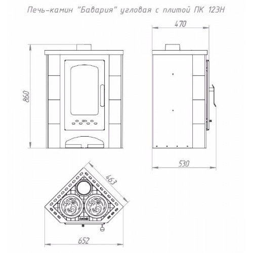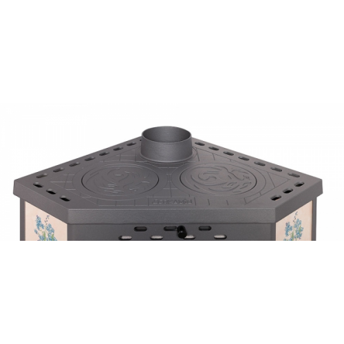 Материал: печь камин изготовлена из высококачественной конструкционной стали с применением импортных комплектующих, боковины выложены изразцами Незабудка.