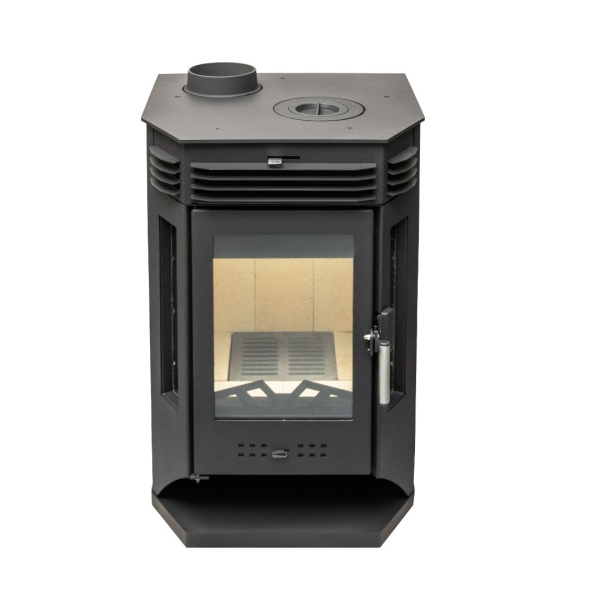 Благодаря номинальной мощности 9 кВт и высокому КПД не менее 75% печь способна эффективно отопить просторное помещение, быстро создавая комфортную температуру. Прочный стальной корпус и массивная 8-миллиметровая верхняя панель гарантируют долговечность и устойчивость к высоким температурам.