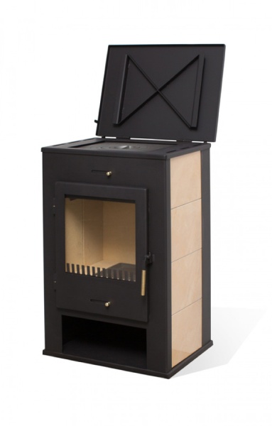 Высокая дверка высотой 550 мм закрывает зольный ящик и топочную камеру.