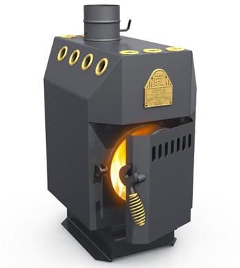 Твердотопливный воздухогрейный котел длительного горения. Большой герметичный топливник. Конвективные теплообменные трубы по всему поперечному сечению и по всей длине находятся в пламени. Топка имеет форму пламени свободно сжигаемого твердого топлива. На верхней горизонтальной поверхности, нагреваемой пламенем, можно разогревать пищу. Большой колосник обеспечивает равномерное горение по всей площади топки. Зола через щели колосника ссыпается в зольный ящик, который позволяет удалять золу, не прерывая горение. Отвод дыма осуществляется через отверстие, расположенное в задней стенке котла с помощью тройника, что значительно упрощает процесс очистки дымохода.