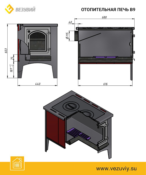 Печь отопительная ВЕЗУВИЙ В 9С
