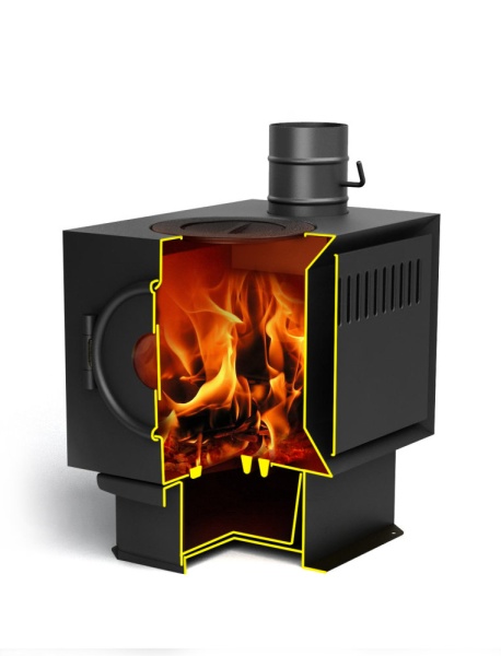 Геометрия топки и боковые конвекторы обеспечивают экономичное отопление помещения
